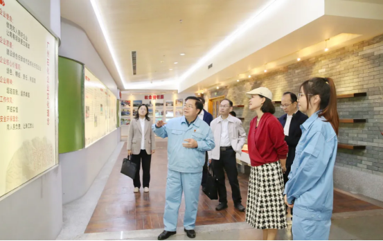 李立宁向陶韶菁一行介绍广州石化安全环保、生产经营、转型发展、党的建设等方面情况,并重点从精心谋划促融合、思想引领促融合、党建思维促融合、定点联系促融合、创新载体促融合、党建共建促融合、基本功训练促融合、健康品牌建设促融合等方面介绍广州石化党建工作与业务深度融合情况。