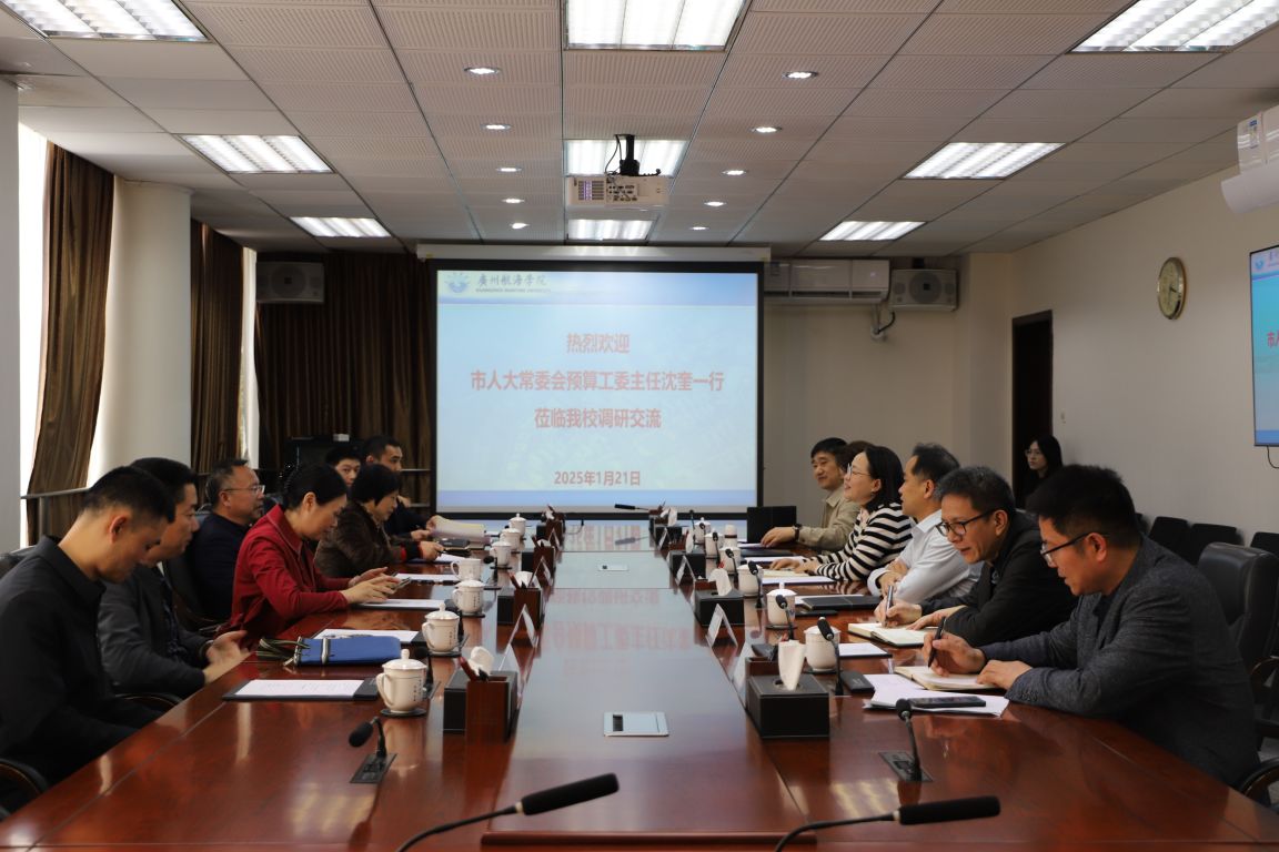 陶韶菁对沈奎主任一行的到来表示热烈欢迎,衷心感谢市人大常委会预算工委一直以来对学校的大力支持。陶韶菁介绍说,广州航海学院从创办起就与海结下了不解之缘,1964年根据时任副总理李先念的批示精神,交通部委托广州海运局创办了面向南海、保障运输的广州海运学校(广州航海学院前身),自此广航学子勤学苦练、矢志报国,凝结了代代传承的红色基因。60年来,学校为华南各港培养了十余万名技能型人才,从海洋开发到服务水利,从南海填岛到港口建设,厚植了满腔向海而兴的蓝色情怀。作为新时代的第一批本科院校,学校始终与新时代同频共振,与新征程同向同行。2018年广东省委明确以广州航海学院为基础筹建广州交通大学,2024年学校进一步明确以建设高水平应用型大学和筹建广州交通大学为“双引擎”目标,构建“海洋+低空的大交通”学科布局,正全力冲击硕士学位授予权,加快提升办学条件和办学实力。陶韶菁希望市人大常委会预算工委及相关部门给予学校发展更大的支持。