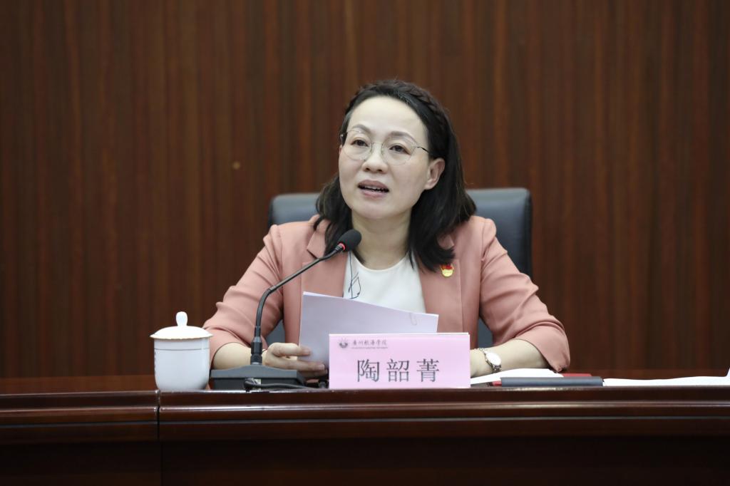 陶韶菁强调,全面从严治党工作要着力“五个聚焦”:一要聚焦知行合一,高站位高纯度筑牢忠诚。持续巩固扩展主题教育成果,不断淬炼忠诚的纯度,持续增强领导干部的凝聚力和战斗力,切实把对党忠诚转化为助力国家发展战略的生动实践,落实省委、市委要求的生动实践,锚定学校高质量发展的生动实践。二要聚焦主责主业,高水平高效率推动落实。坚持心怀“国之大者”,强化学校内涵建设三年攻坚计划的目标引领,紧紧抓牢抓实八大任务,高水平推进。三要聚焦初心使命,高标准高要求拼搏奋斗。在实现“四个回归”中,树立“以赛促学、以赛促教、以赛促就”教育理念,以各类技能大赛为突破点全面提高学生竞争力;构建“国家级——省部级——校级”教学名师培育体系,打造经师大师;量化部门和人员考核指标,强化责任担当,向海图强,向海而兴。四要聚焦作风建设,高匹配高转变提升服务。在落实好领导干部联系服务群众“六个一工程”、校领导接待日、校长信箱、校长热线、学生座谈会等机制条件下,进一步深入基层、深入群众,推动作风大转变。五要聚焦正风肃纪,高基调高威慑一严到底。以身边案为镜,做好以案促鉴、以案促治、以案促改工作;各级领导干部要认真履行“一岗双责”,把严的基调、严的措施、严的氛围长期坚持下去,实现“山清水秀”的政治生态和育人环境。