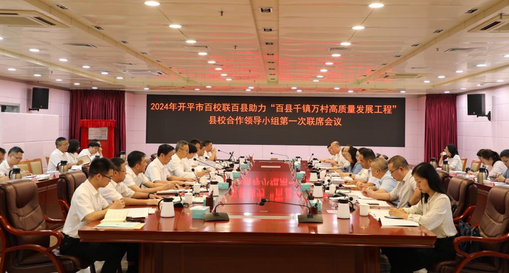 (党政办 供稿)4月17日,2024年百校联百县助力“百县千镇万村高质量发展工程”县校合作领导小组第一次联席会议在开平市召开,开平市政府、广州航海学院、江门职业技术学院三方齐聚一堂,为进一步深化县校结对共建,谋划下一步工作计划做深入交流,为推动校地高质量发展献言献策。校党委书记陶韶菁出席会议并讲话,校纪委书记陆志英、开平市委书记余中华、市委副书记市长陈小曼、市领导关耀东、崇立桃、谈润林、许永锋、刘剑锋以及江门职业技术学院党委书记张忠林、副书记林愿才及相关部门负责人参加会议。